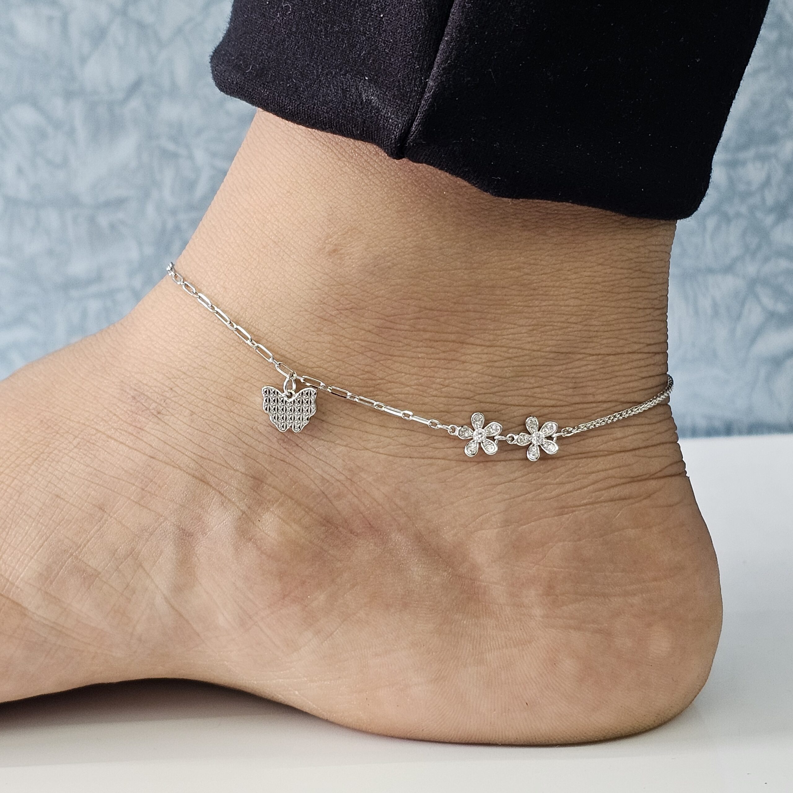Floral Butterfly Charm Anklet